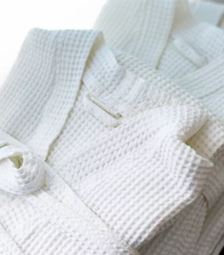 Luxusszállodai minőségben készült köntösünket 100% pamutból állították elő. A pamut az egyik legkedveltebb anyag a világon, kiválósága miatt az egyik legkeresettebb és legkelendőbb, így bátran állítjuk, hogy ez a lehető legideálisabb kelme fürdőszobai termékekhez. Könnyen kezelhető, tartós, a hőt pedig jól tartja, köszönhetően a pamutanyag és a bőr közt kialakuló légrétegnek, így légáteresztése is példás.