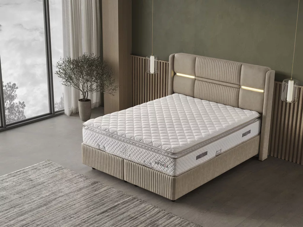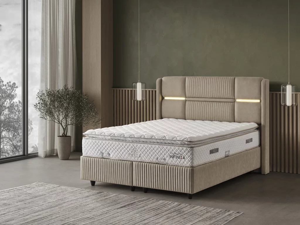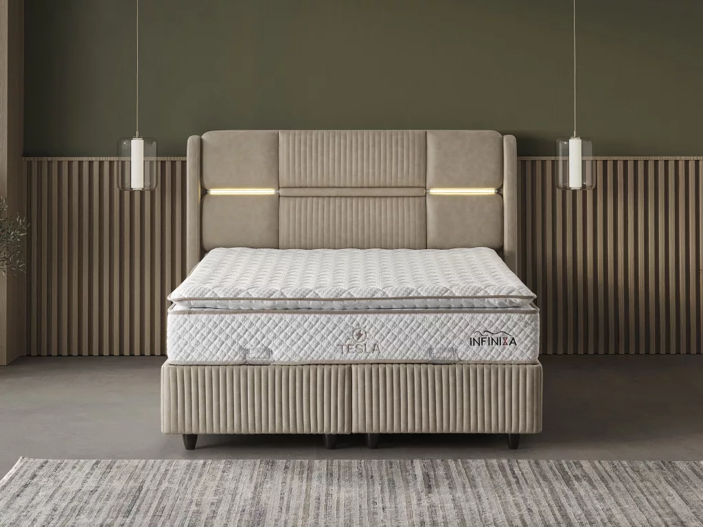 Az Infiniza Tesla ágykeret 160x200 cm ideális választás, ha Ön egy látványos, modern és magas komfortot nyújtó prémium franciaágyat keres, amely nemcsak funkcionális, hanem a hálószoba meghatározó design eleme is.