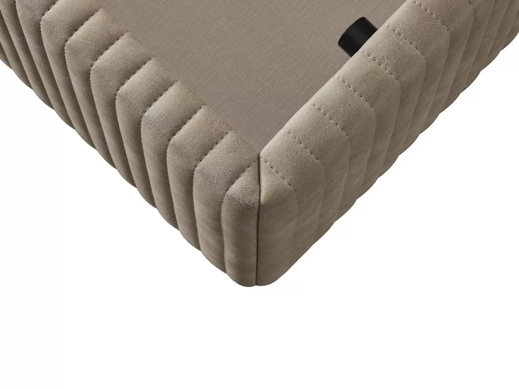 Az ágy kialakítása a funkcionalitást is szem előtt tartja. A beépített ágyneműtartó diszkréten rejtve marad, miközben tágas tárolóhelyet kínál.