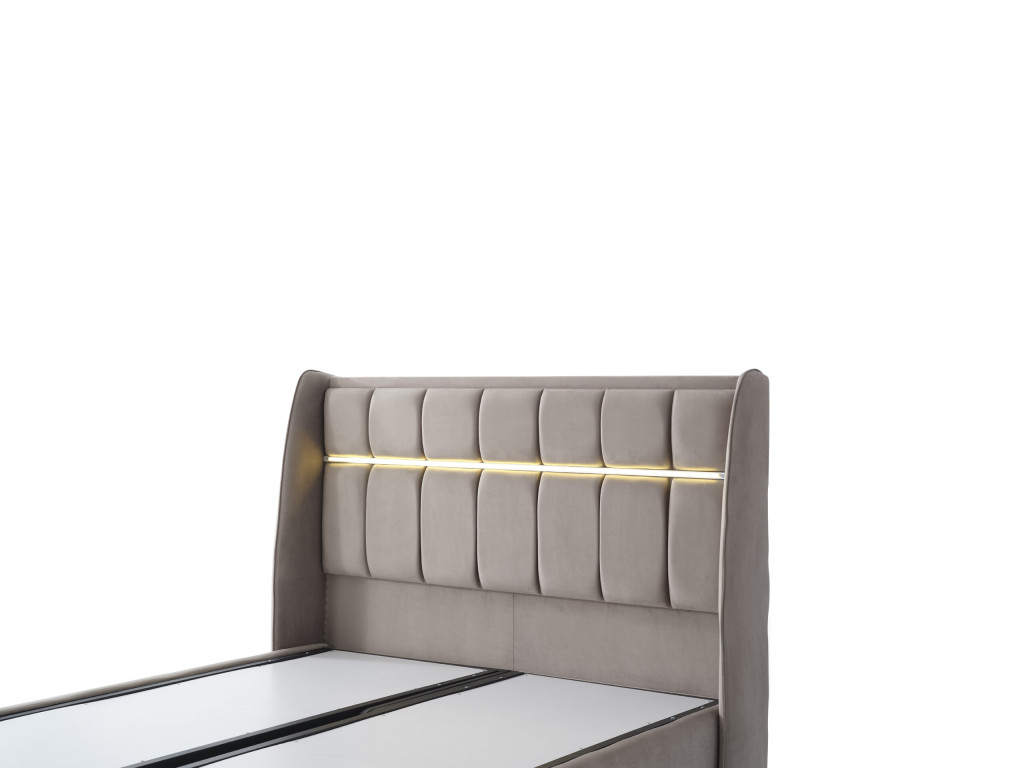 Az Infiniza Vital ágykeret elegáns füles hajlitott alakban díszített kárpitozással rendelkezik.