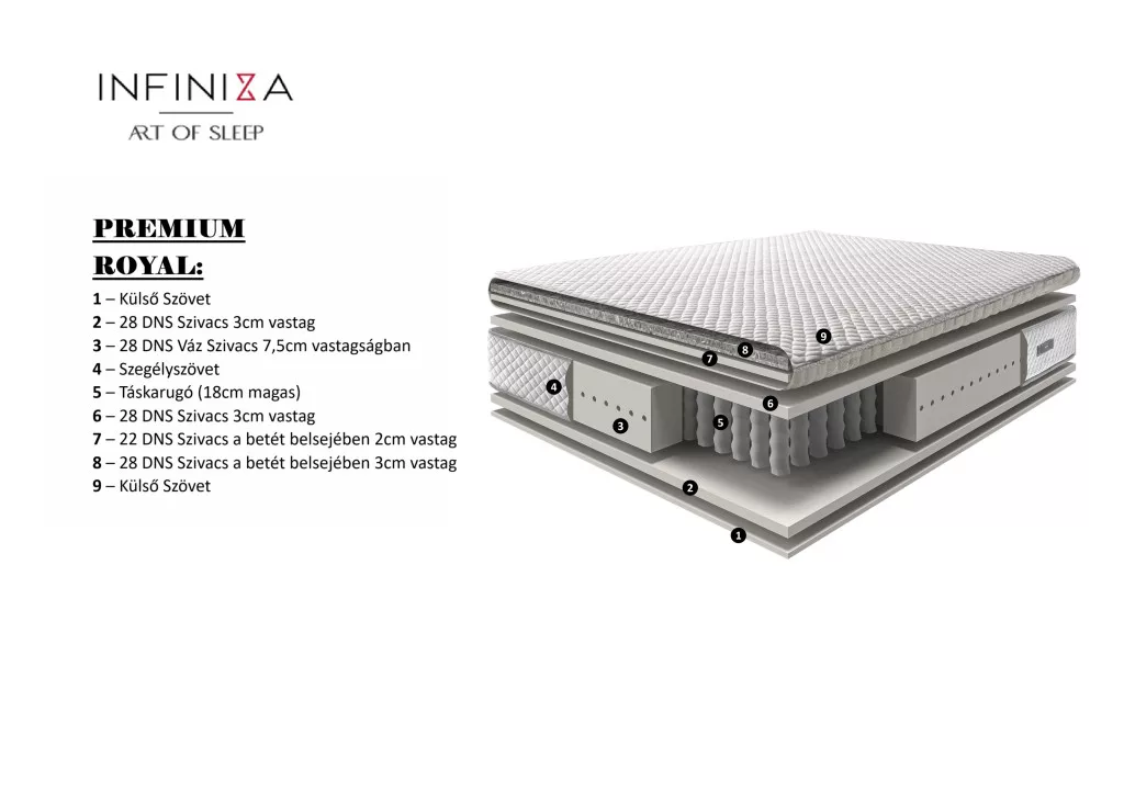 Táskarugós Luxus Matrac INFINIZA PREMIUM ROYAL Matrac 28cm magas