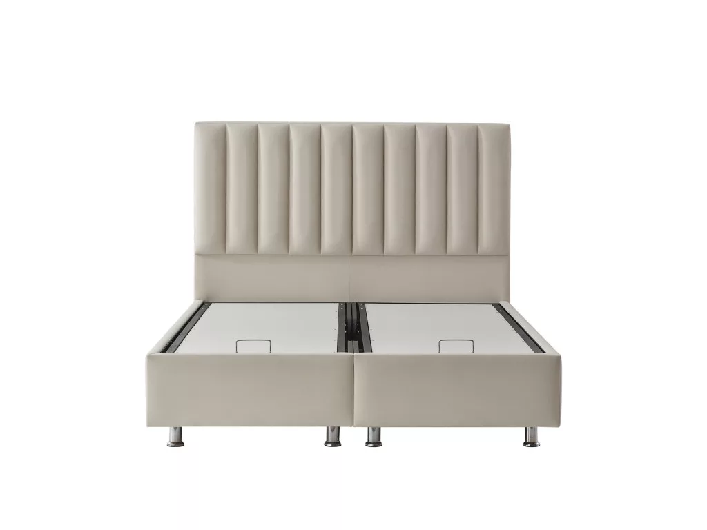 A letisztult formavilág és a modern ágykeret design elegáns, mégis időtálló megjelenést kölcsönöz. A hosszanti varrással kialakított, dekoratív fejtámla kifinomult részletként emeli ki az ágy karakterét, miközben kényelmes háttámaszt nyújt pihenéshez vagy esti kikapcsolódáshoz. A teljes felületében kárpitozott kivitel nemcsak esztétikus, hanem kellemes tapintású is, így valódi prémium ágy élményt nyújt.