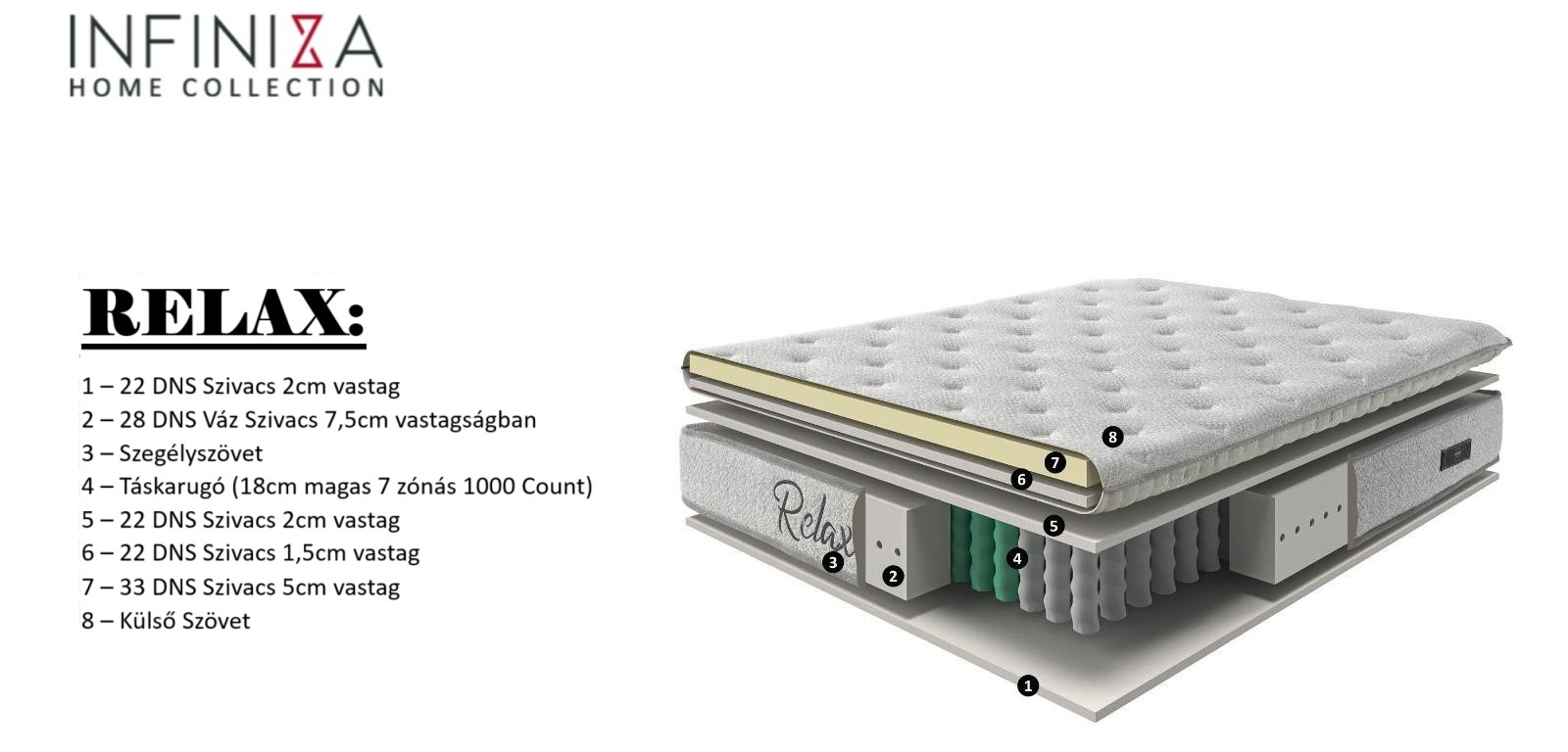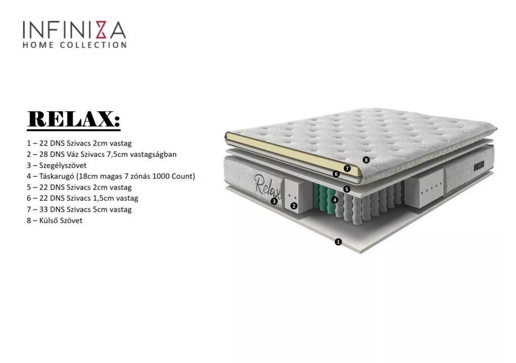 INFINIZA RELAX – magas minőségű 7 zónás táskarugós matrac
