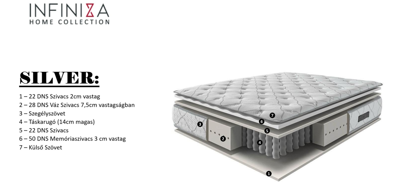 INFINIZA SILVER memóriahabos matrac - 7 zónás zsákrugós rendszer