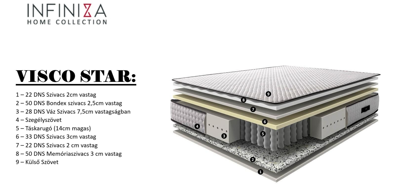 INFINIZA VISCO STAR matrac felépítése